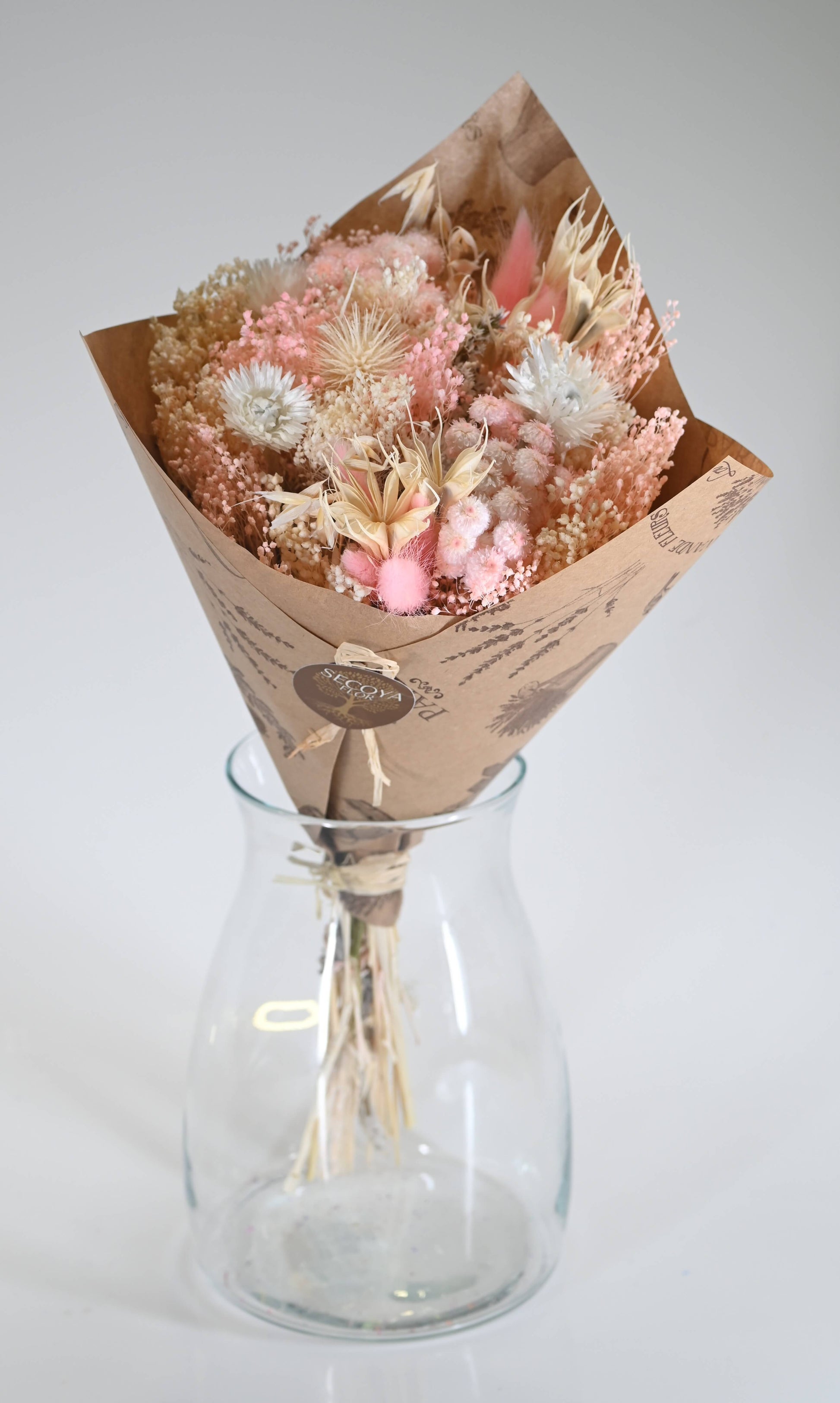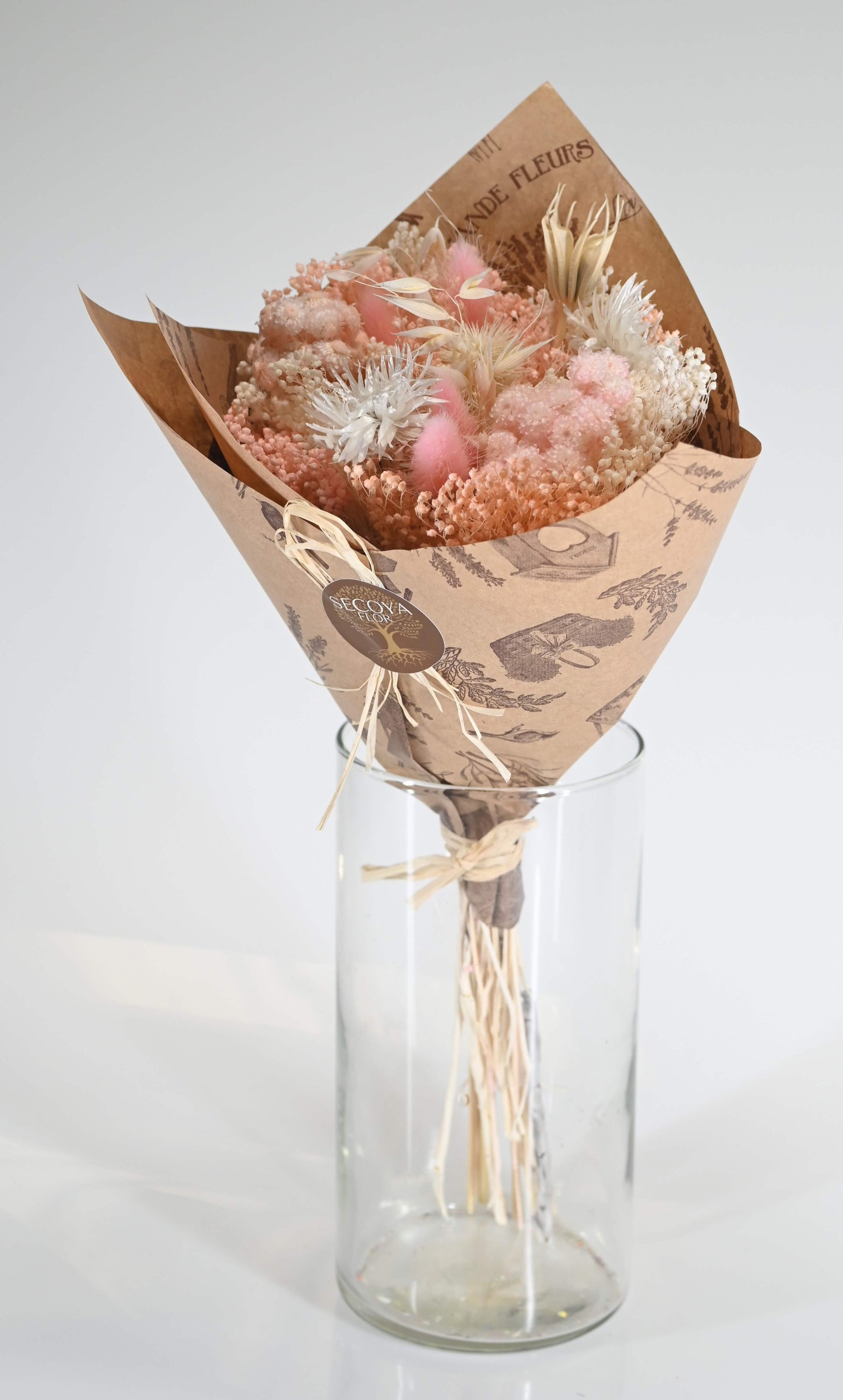 Laissez-vous séduire par la douceur naturelle du bouquet Éclat Rose, une composition artisanale aux nuances poudrées de rose, blanc et beige. Chaque fleur séchée a été soigneusement sélectionnée pour sa texture et sa tenue, créant un ensemble délicat et raffiné, à la fois moderne et intemporel.